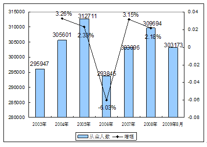 二、2003-2009年8月 行业 从业人员发展状况