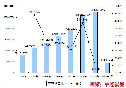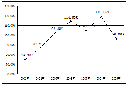 由数据可以看出,03-09年我国磷酸二氢钾市场增长速度很快,虽然07年有所减缓下降。但08年有快速增长起来。未来几年我国磷酸二氢钾 行业 仍将保持快速增长。