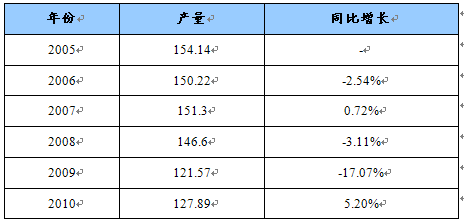 2010年中石油石蜡产量约78万吨左右,约占中国石蜡产量的61%,中石化石蜡产量约为40万吨左右,约占中国石蜡产量的39%。2009年石蜡总产量在1215700吨左右,较去年同期减少了207000吨左右。其中抚顺石化产量最高,达到313000吨。