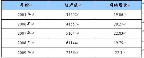 2005-2009年我国建筑业总产值增长情况 单位:亿元,%