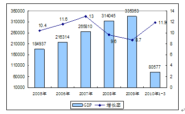 2005-2010年我国GDP增长变化情况 单位:亿元,%
