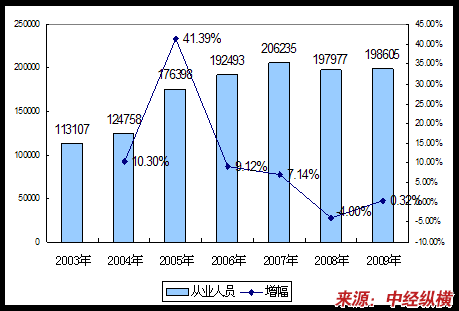 二、2003-2009年 行业 从业人员发展状况