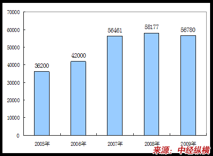 2005-2009年我国钢铁产量图