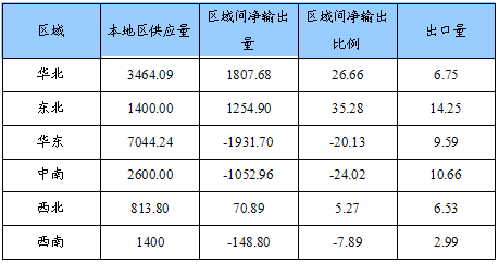 我国钢铁区域市场输入/输出情况统计表