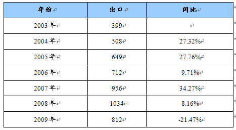 2004-2009年中国冷冻修边机出口海外市场状况 单位:万美元