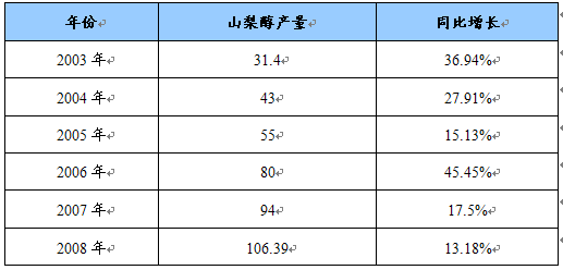 2003-2008年我国山梨醇产量统计 单位:万吨