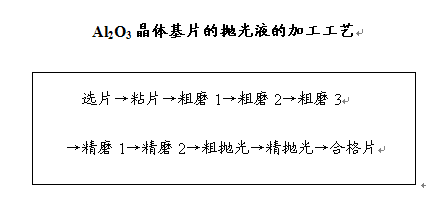 以上工艺视Al2O3晶体基片本身的情况,可减少研磨工序的次数,加工时间大致8小时。研磨5小时,每道研磨工序大致1小时左右。粗磨时可减少时间。精磨时,可适当增加时间。抛光3小时,其中:粗抛光工序2小时,精抛光工序1小时。