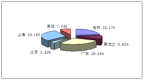 2009年我国甲基丙烯酸甲酯(MMA)生产区域分布结构图