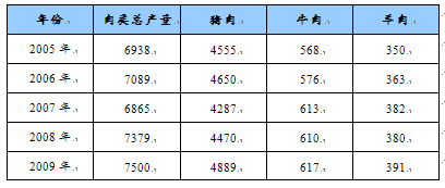 2005-2009年我国主要肉类产量表 单位:万吨