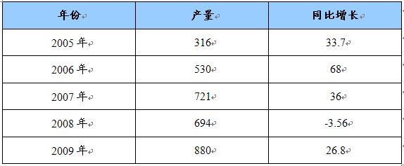 2005-2009年我国不锈钢产量增长情况 单位:万吨,%