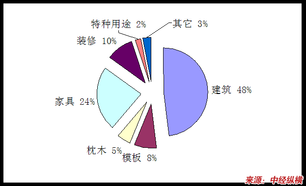 除直接使用原木外,木材都加工成板方材或其他制品使用。在古建筑中木材广泛应用于寺庙、宫殿、寺塔以及民房建筑中。在现代土木建筑中,木材主要用于建筑木结构、木桥、模板、电杆、枕木、门窗、家具、建筑装修等。