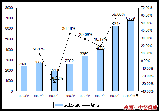 二、2003-2010年2月 行业 从业人员发展状况