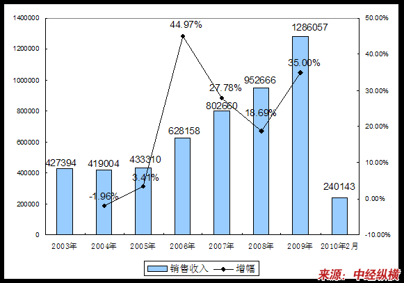 四、2003-2010年2月 行业 销售收入发展状况