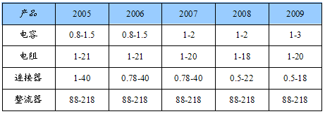 各主要电子元件产品历年价格