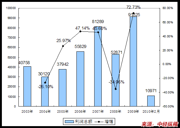五、2003-2010年2月 行业 利润总额发展状况