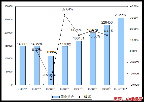 三、2003-2010年2月 行业 固定资产发展状况