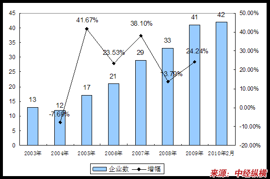 一、2003-2010年2月 行业 企业数量发展状况