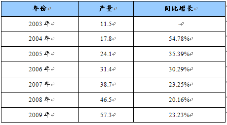 2003-2009年我国磷酸二氢钾产量及其增长