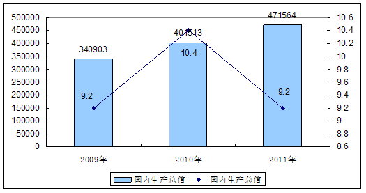 2009-2011年我国GDP增长变化图