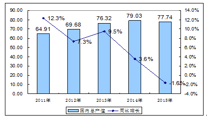 2011-2015年中国蜡烛生产总值预测 单位:亿元人民币