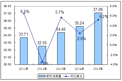 2011-2015年中国蜡烛表观消费量预测 单位:万吨