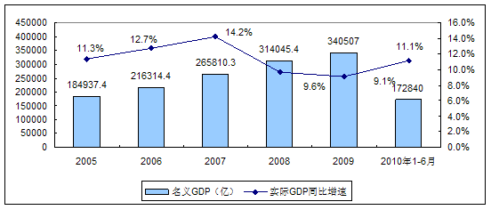 2005年-2010年2季度我国GDP增长变化情况