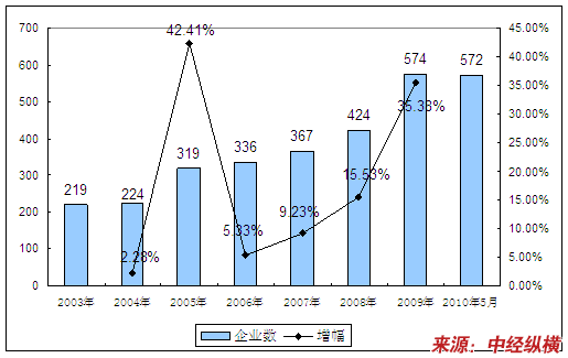 2003-2010年5月金属压力容器 行业 企业数量发展状况