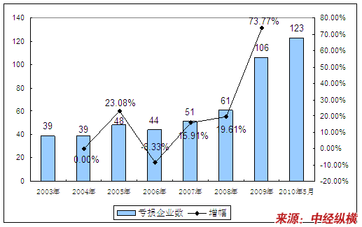 2003-2010年5月金属压力容器 行业 亏损企业数量状况