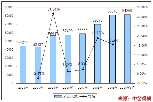 2003-2010年5月金属压力容器 行业 企业从业人员发展状况