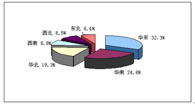 2009年磷酸锌需求地区分布统计图