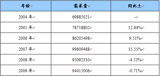 2004-2009年空调风机市场需求量及其增长