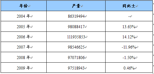 2004-2009年空调风机产量及其增长