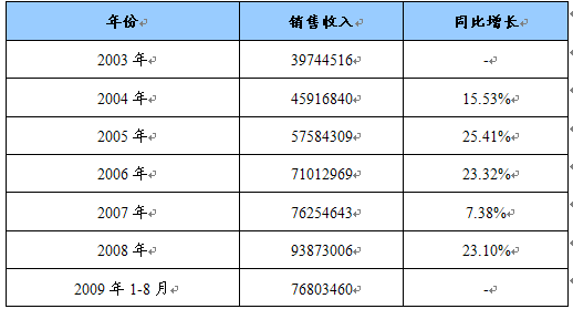 据国家统计局对规模以上企业统计,截止到2008年底,我国共有井下作业企业30家,年销售收入达到938.73亿元,2009年8月累计销售收入达到768.03亿元。