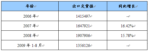 2006-2009年8月我国井下作业出口交货值统计 单位:千元