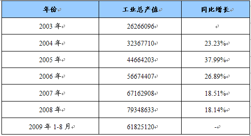截止到2009年8月我国井下作业工业总产值达到618.25亿元,从近6年数据可以看出我国井下作业工业总产值呈稳定增长态势,这说明了我国井下作业进入了平稳发展期。