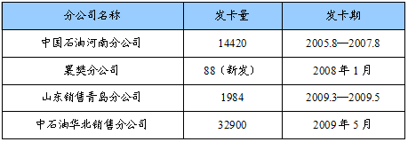 2)中国石油河南分公司自2005年8月15日开始在全省范围内实施加油站IC卡系统改造并发行第一张加油IC卡以来,目前共改造加油站504座,设置发卡储值点50个。截止到2007年8月1日,河南分公司累计发行IC卡14420张,河南省18个地市实现了“一卡在手、全省加油”。