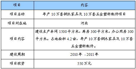 河北年产10万套钢木家具及10万套五金塑料配件项目