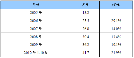 前几年,我国家具用塑料缓冲垫、脚垫产业快速发展稳定,产能增长率达到15%左右,随着市场的发展,家具用塑料缓冲垫、脚垫发展区域平衡。2008、2009年,受到金融危机影响,产品出口萎缩,产量增速缓慢,但随着全球、我国经济的复苏,产品出口将逐渐恢复。