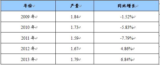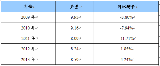 2009-2013年我国抗坏血酸产量预测表 单位:万吨