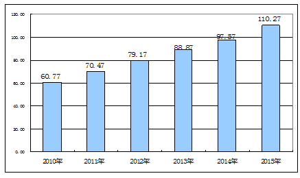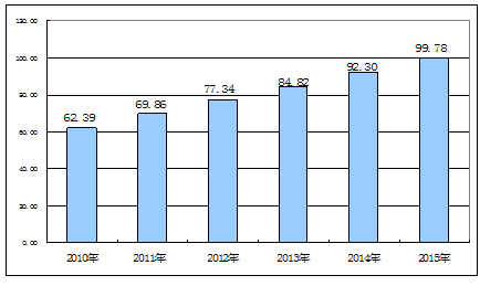 2010-2015年磷酸二氢钾生产规模预测 单位:万吨