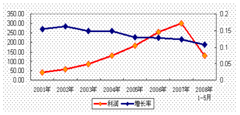 2001年-2007年,该 行业 毛利率呈下降趋势,2007年该 行业 毛利率为11%,与历史最高水平相差近4个百分点,但与其相反的是,该 行业 净利润在不断上升,2007年达到299.18亿元,这说明电子元件 行业 规模在不断扩大,该 行业 在销售过程中除了控制销售成本以外,对销售期间产生的其它费用进行优化,改良经营方法,使得 行业 利润不断扩大。