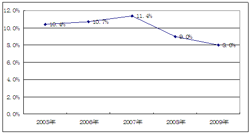 2010年,消费保持平稳增长具备诸多有利因素,城乡居民收入水平持续增长为扩大消费增强了后劲,医改新方案等社会保障制度建设有助于减轻居民消费的后顾之忧,储蓄消费型增长模式使我国消费有较强稳定性。但经济型轿车减税、家电下乡、家电和汽车摩托车以旧换新等扩大消费政策可能出现政策效应递减。预计社会消费品零售总额增长18.5%,实际增长15.6%,略低于2009年水平。
