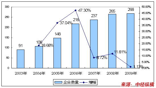 2003-2009年褐煤开采洗选 行业 企业数量发展状况