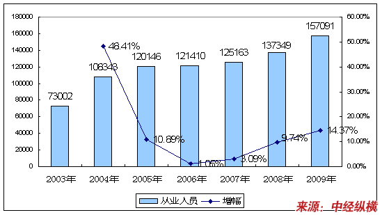 2003-2009年褐煤开采洗选 行业 从业人员发展状况