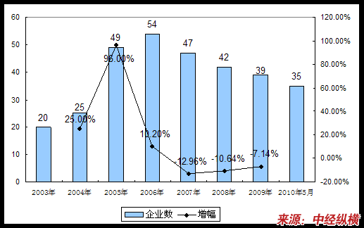 一、2003-2010年5月 行业 企业数量发展状况