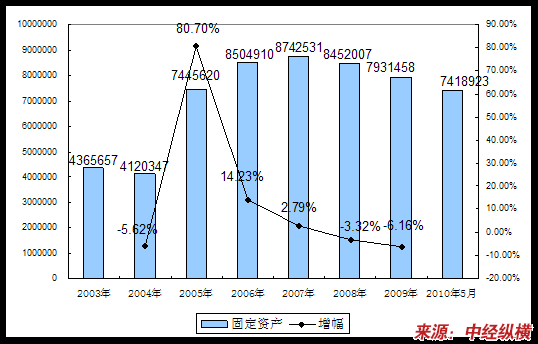 三、2003-2010年5月 行业 固定资产发展状况