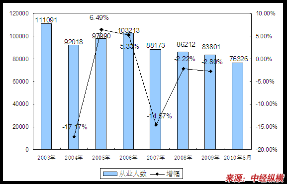 2003-2010年5月天然植物纤维编织工艺品制造 行业 从业人员发展状况