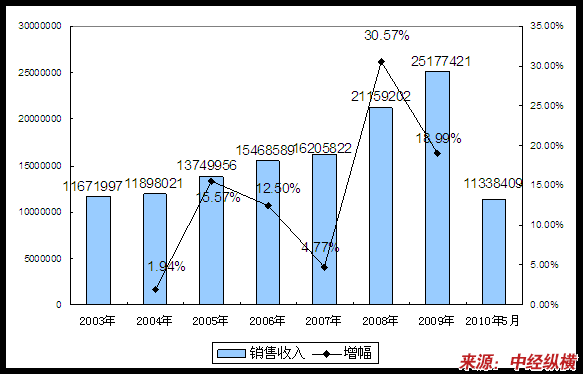 2003-2010年5月天然植物纤维编织工艺品制造 行业 销售收入发展状况