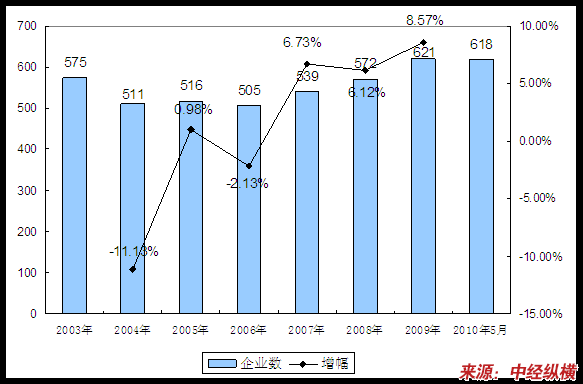 2003-2010年5月天然植物纤维编织工艺品制造 行业 企业数量发展状况