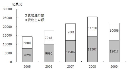 2009年货物进出口总额及其增长速度 单位:亿美元